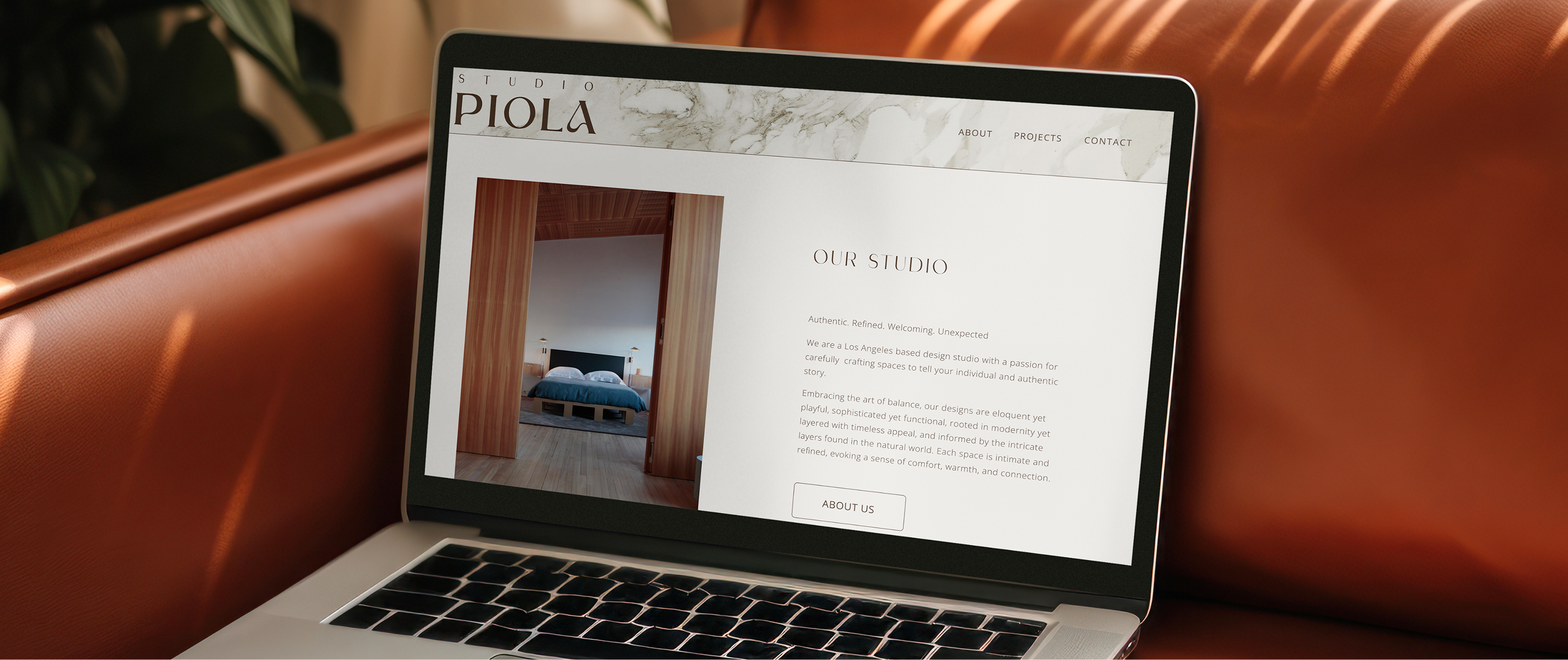Studio Piola is a Los Angeles–based interior design studio focused on creating refined, story-driven spaces. I developed the studio’s full brand identity, including a logo suite, typography system, and visual direction, and extended the system across a marketing website, business cards, and social media concepts.